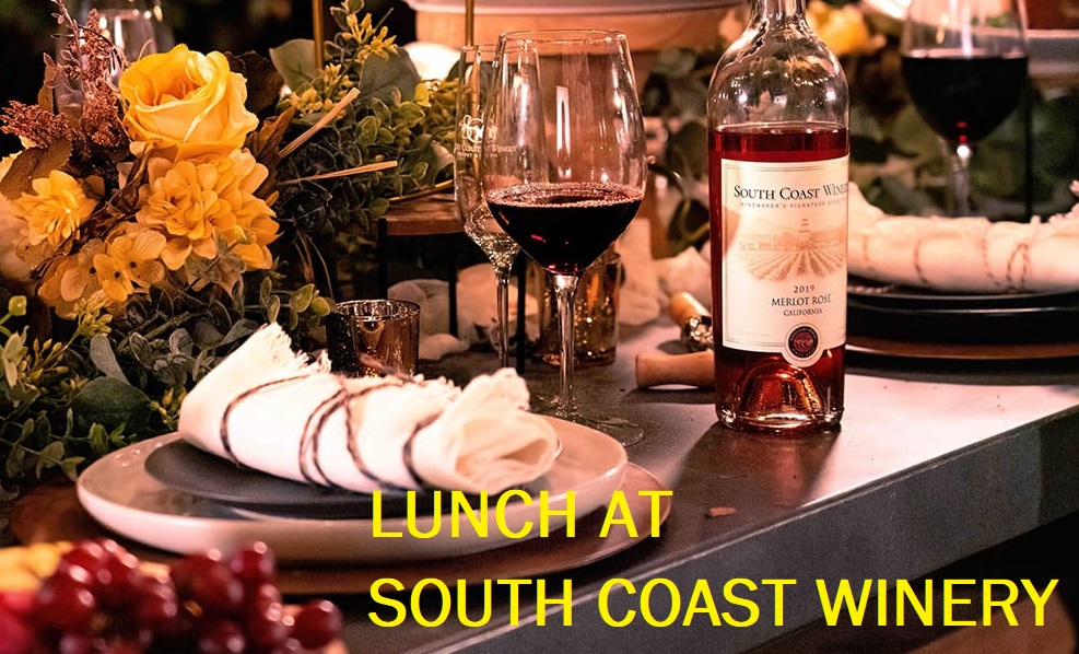 - Optional Fine dining experience at South Coast Winery’s Restaurant “Vineyard Rose” (*Price of food is not included and all orders must be pre-ordered)